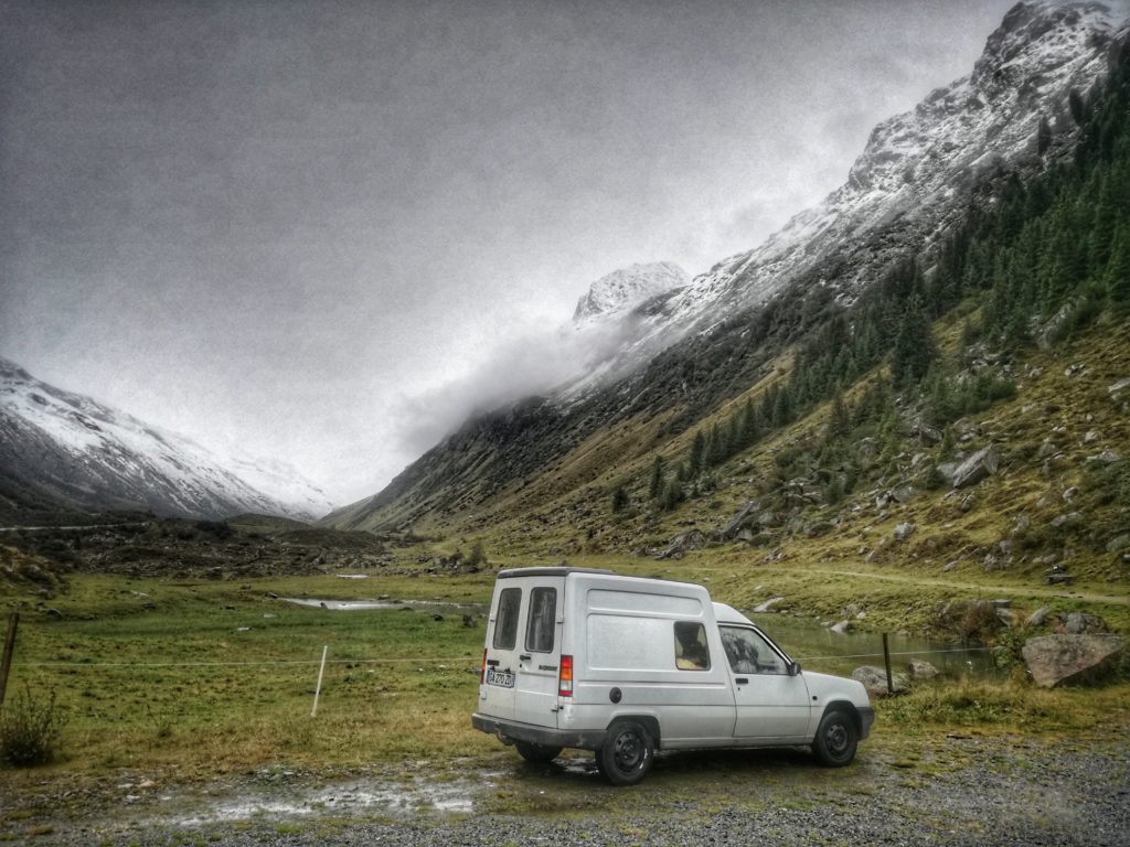 Nous voilà donc en quête d’un nouvel endroit pour stationner, quand soudain, une question malheureuse nous traverse l’esprit: le camping sauvage est-il autorisé dans le Tyrol? Réponse : NON. C’est ballot… Heureusement nous avons trouvé un joli petit camping dans une très belle vallée, ce qui nous a permis de prendre une bonne douche chaude et de pouvoir sécher notre linge.