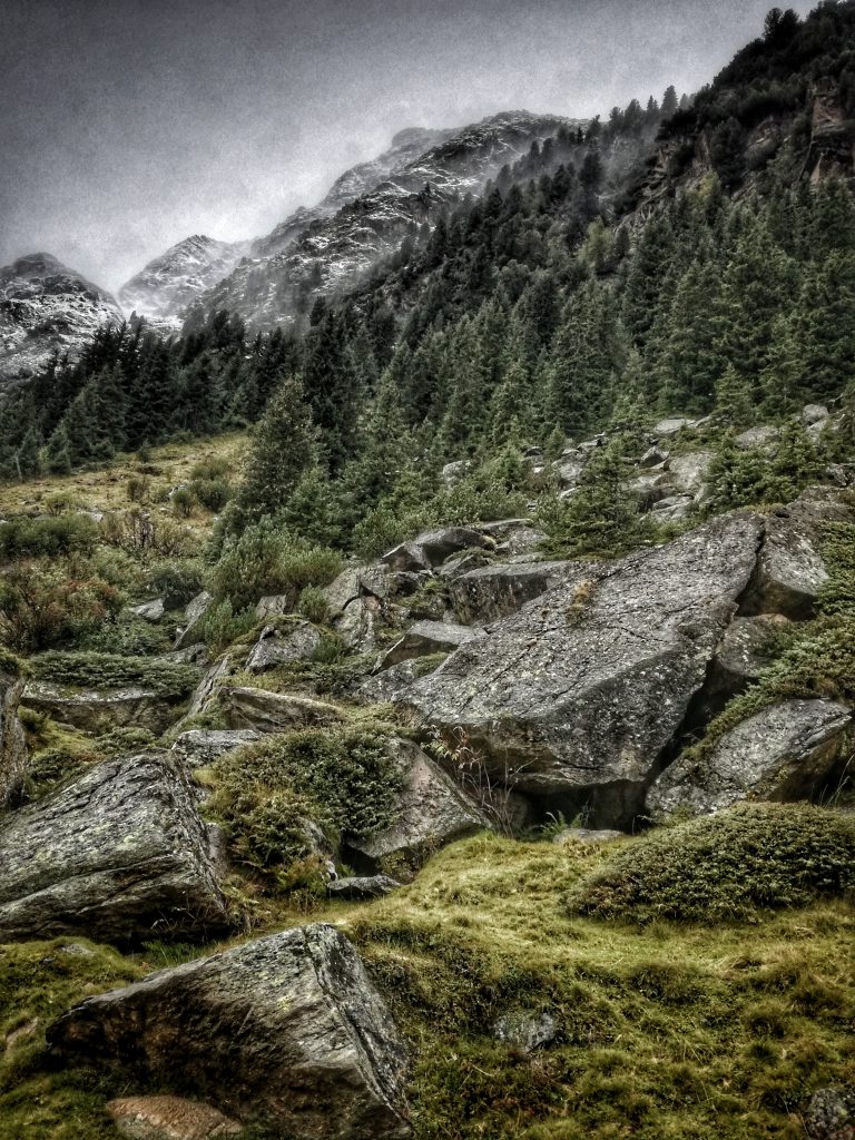 Nous voilà donc partis pour visiter le Tyrol et décidons de suivre ce petit ruisseau qui nous avait si bien bercés la nuit précédente. Ouh là il grossit ! La berceuse ce soir risque d’être plus brutale!