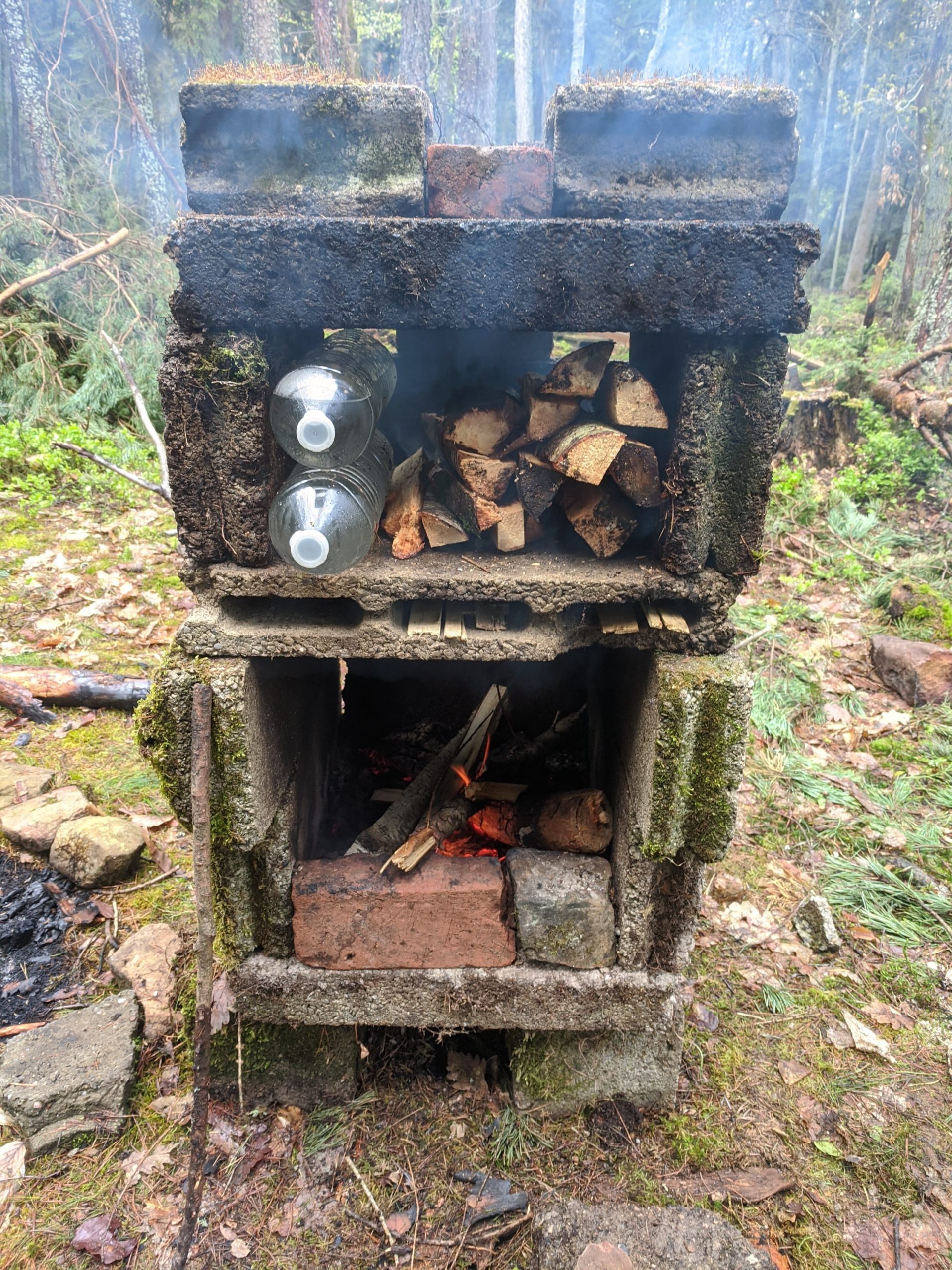 Quelques heures et amélioration plus tard, nous vous présentons la cheminée version 2.4, avec chauffe-eau intégré, attention :