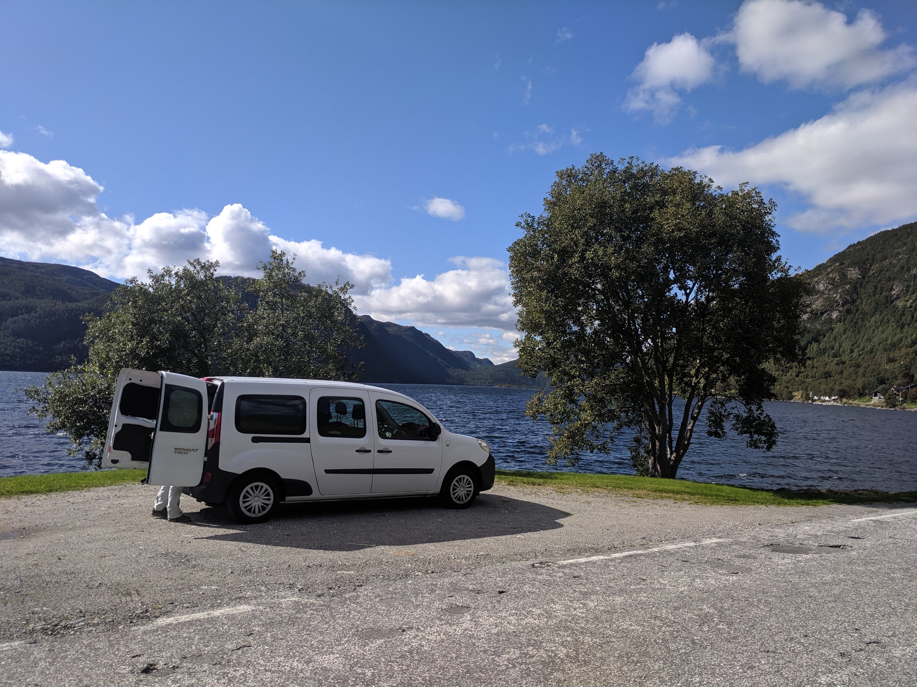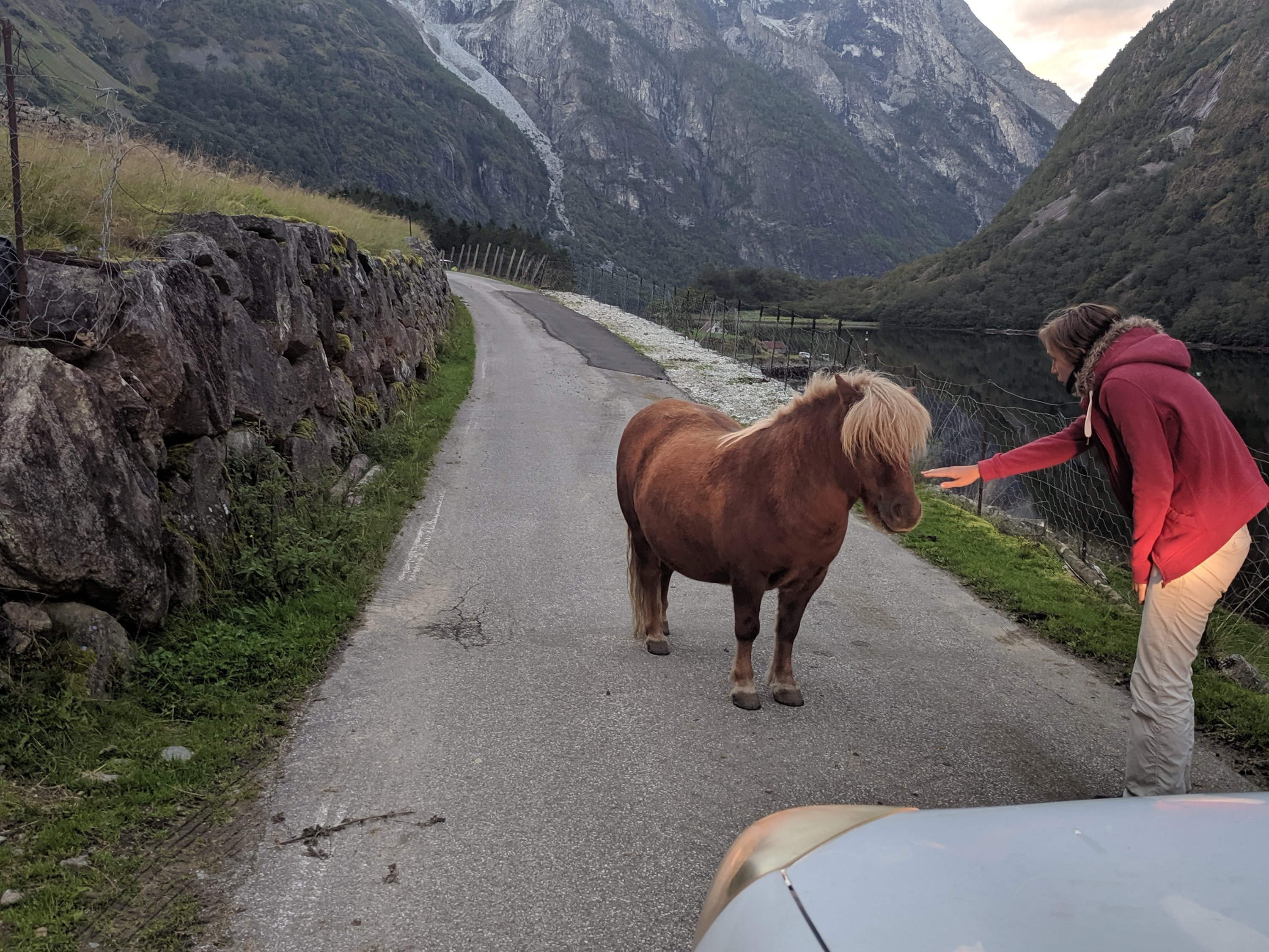 Et rien à faire, 5min plus tard il était toujours là… « None shall pass » qui disait ! (Voir le film Le sacré Graal 😂). Bref après quelques caresses, nous voilà passés et bien installés au bord du Næroyfjord.