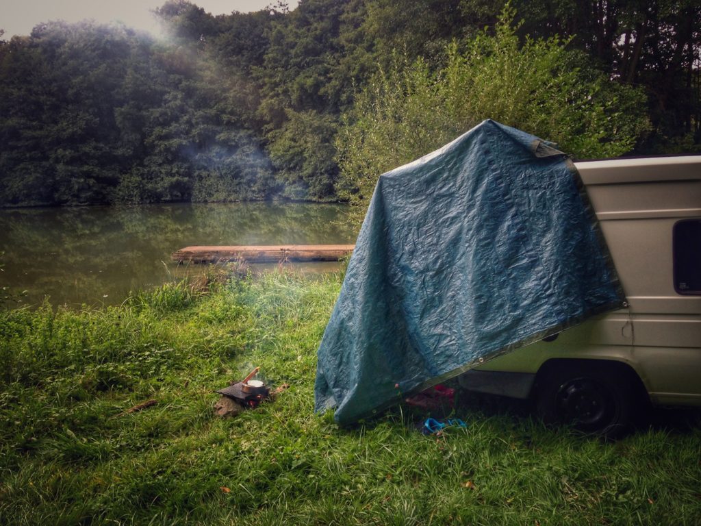 Voici à quoi ressemble une douche à l’italienne lorsque vous faites du camping sauvage. Rudimentaire, on l’avoue mais efficace, surtout après 8h de route.