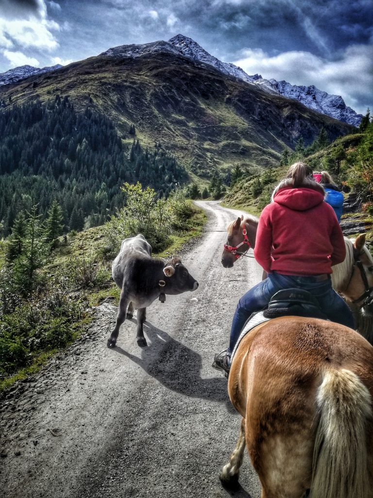 Une super journée en perspective, parce que le soleil est au rendez-vous. Au programme, ballade à cheval dans les montagnes sur de magnifiques Hafflinger, chevaux typiques du Tyrol.