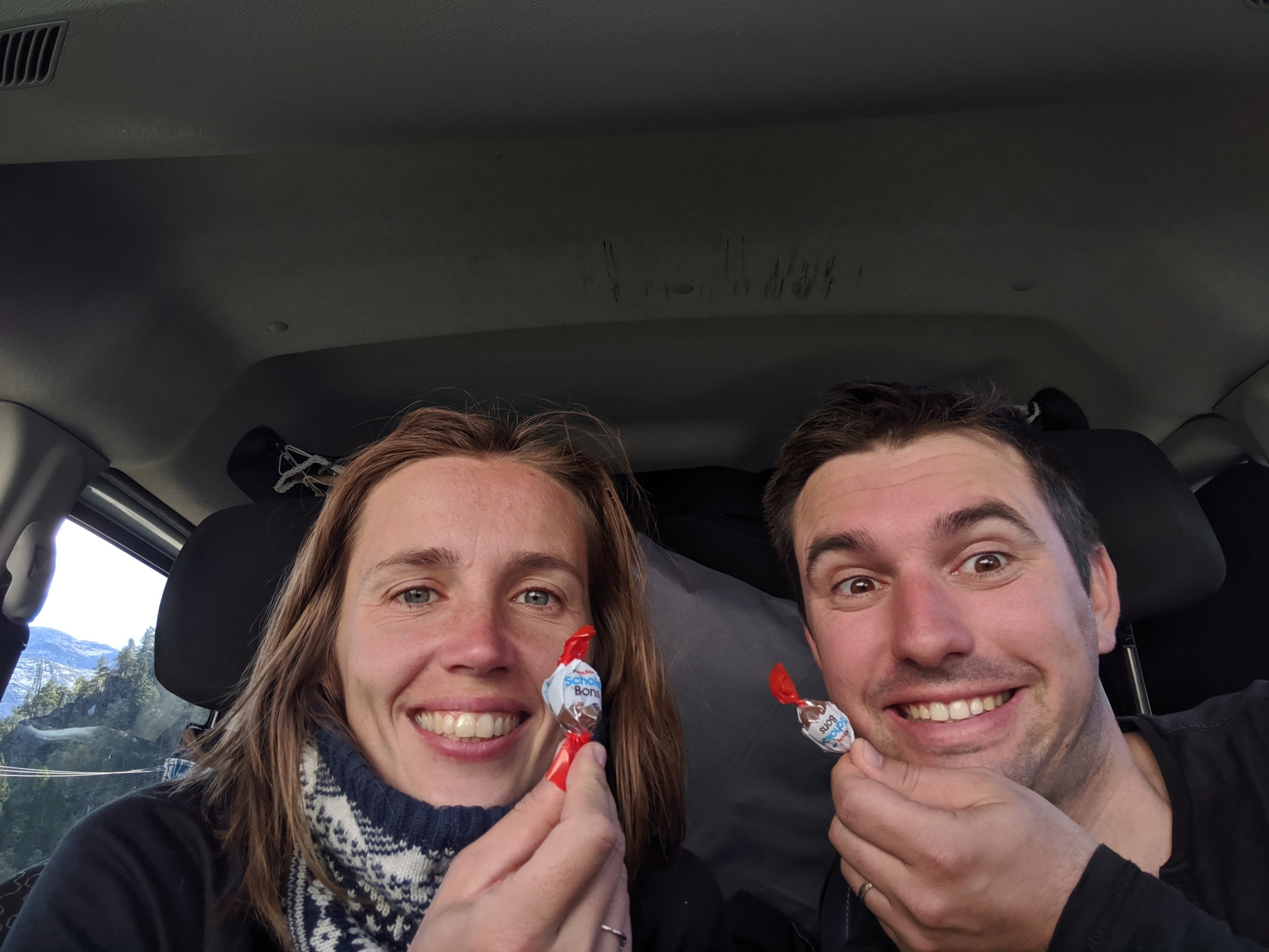 Heureusement, les Chokobons de Nadine et Jean-Michel nous ont donné la motivation nécessaire pour rejoindre la voiture, merci, vous nous avez sauvés 😘…
